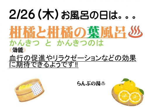 2/26(木)柑橘(かんきつ)と柑橘の葉風呂